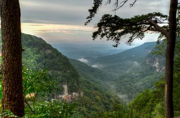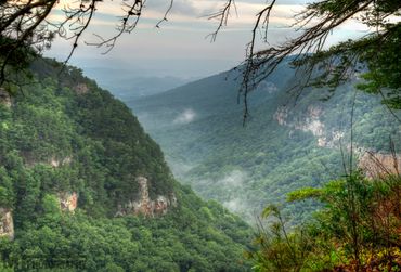 Cloudland Canyon State Park in Northwest Georgia lived up to its name with the low clouds down in the canyon. There was a short walk along a pathway on the edge of the canyon to an overlook with a roughly 270 degree view of the canyon.